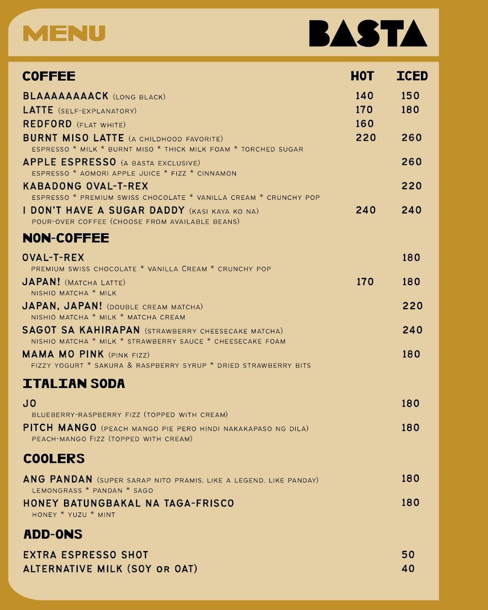 Basta cafe Menu